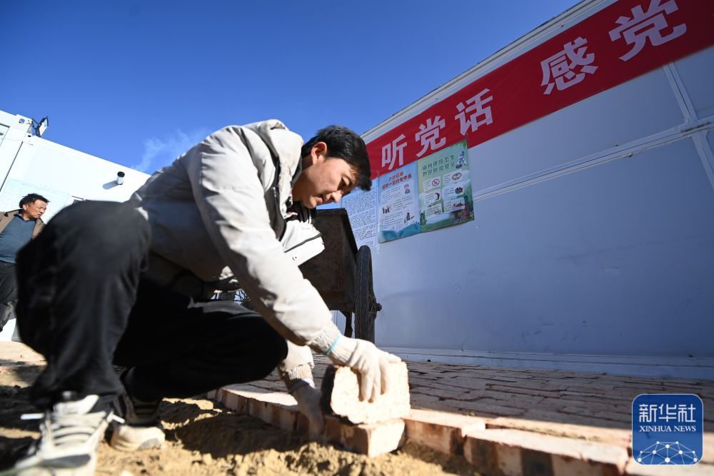 12月29日体育竞技文推荐双男主,在积石山县石塬镇沈家坪村板房安置点,村民给板房外说念路铺砖。