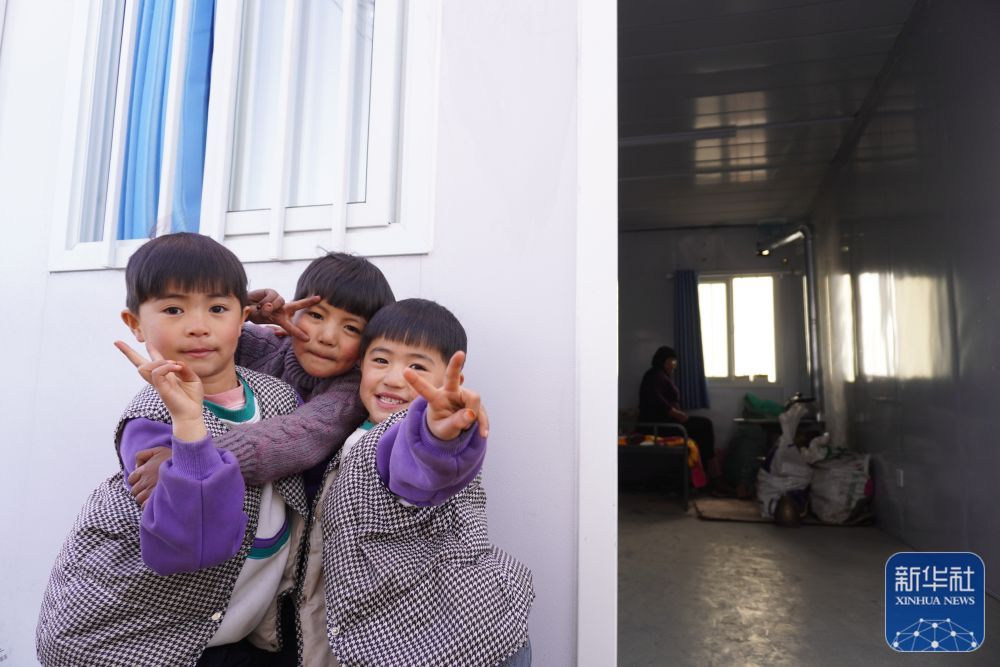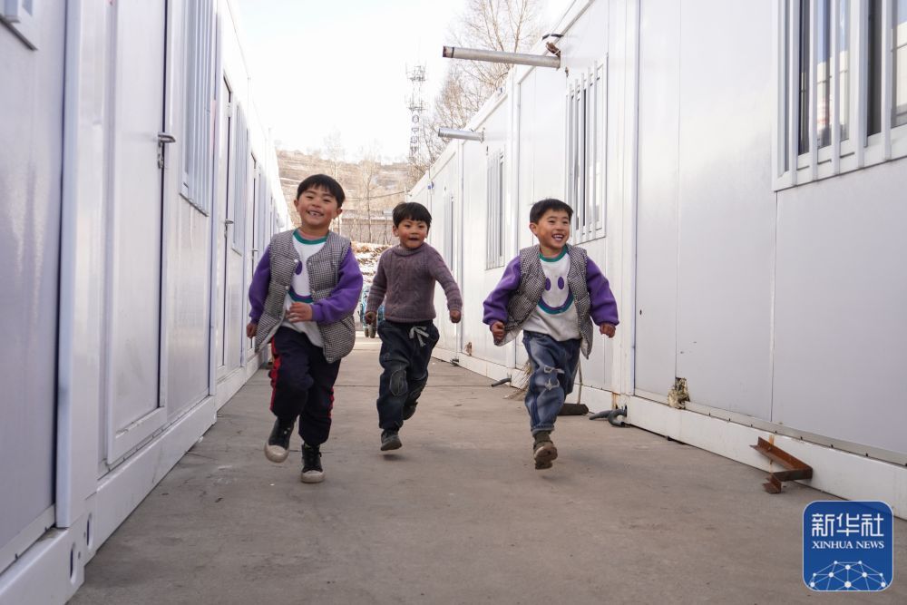 12月29日,在积石山县柳沟乡尕集村板房安置点,小一又友在板房间玩耍。