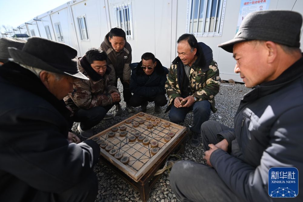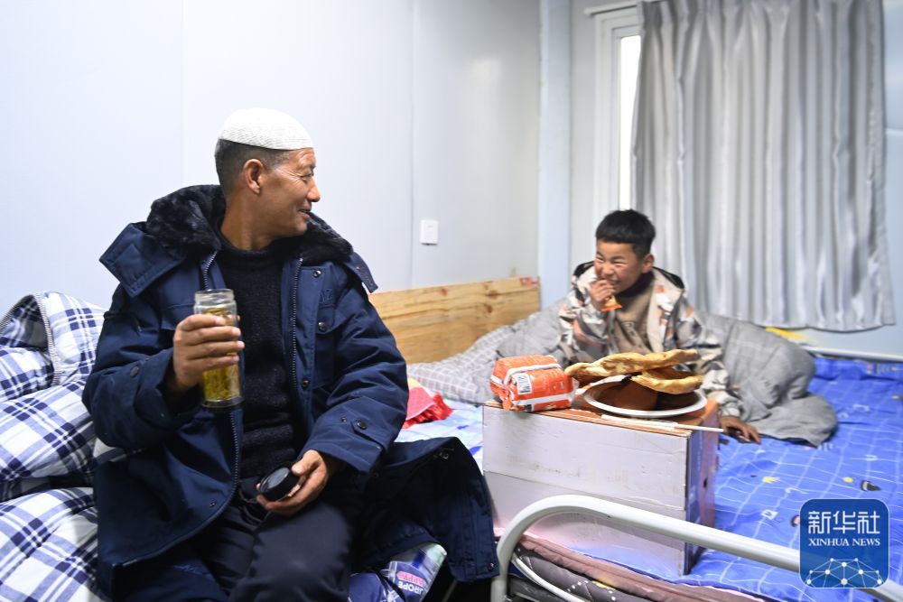 皇冠hg86a12月29日,在积石山县大河家镇大河村板房安置点,受灾众人在板房内休息。