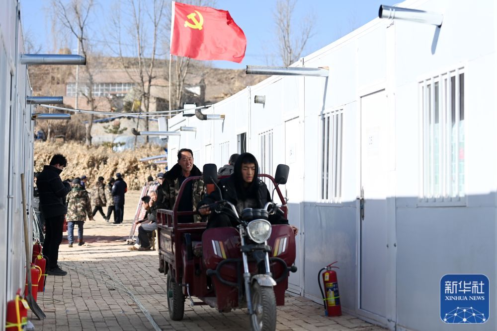 这是12月29日在积石山县石塬镇拍摄的沈家坪村板房安置点欢叫。