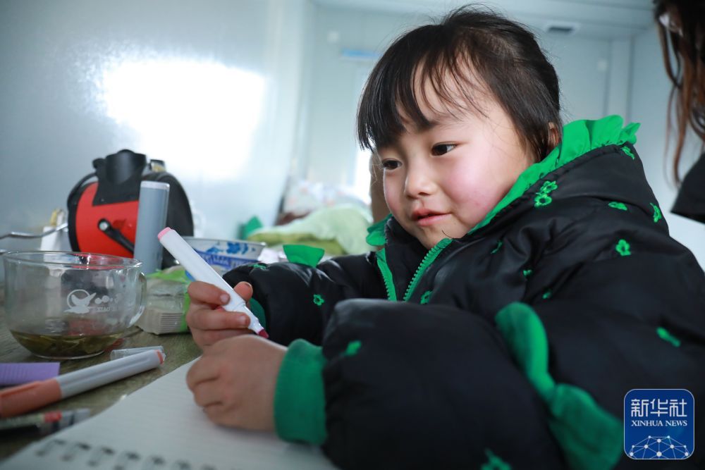 12月29日,在积石山县大河家镇大河村板房安置点,别称儿童在板房内画画。 新京报讯(记者 姜慧梓)煤价高位运行、电煤紧缺,东北地区出现用电供需紧张局面。9月23日以来,东北多地发布限电通知,通知称,若电力紧张情况缓解,限电工作持续。